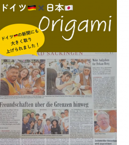 現地の新聞(Badische Zeitung)でも大きく取り上げられたのは、日本の学生たちが講師を務めた「Origami-Kurs(折り紙ワークショップ)」の様子です。